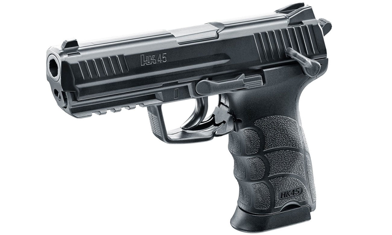 The HK 45 is the big-bore evolution of the military-grade HK USP pistol. It's 10+1 round medium-capacity configuration bridges the gap between lower-capacity single-stack 45 caliber pistols and higher capacity 45s that are just plain fat and unwieldy. The HK45 represents an evolutionary advancement of the USP Compact chambered in .45 ACP and shares the operating principles and many internal parts of that weapon. Significant effort went towards making it more ergonomic than the HK USP Compact.